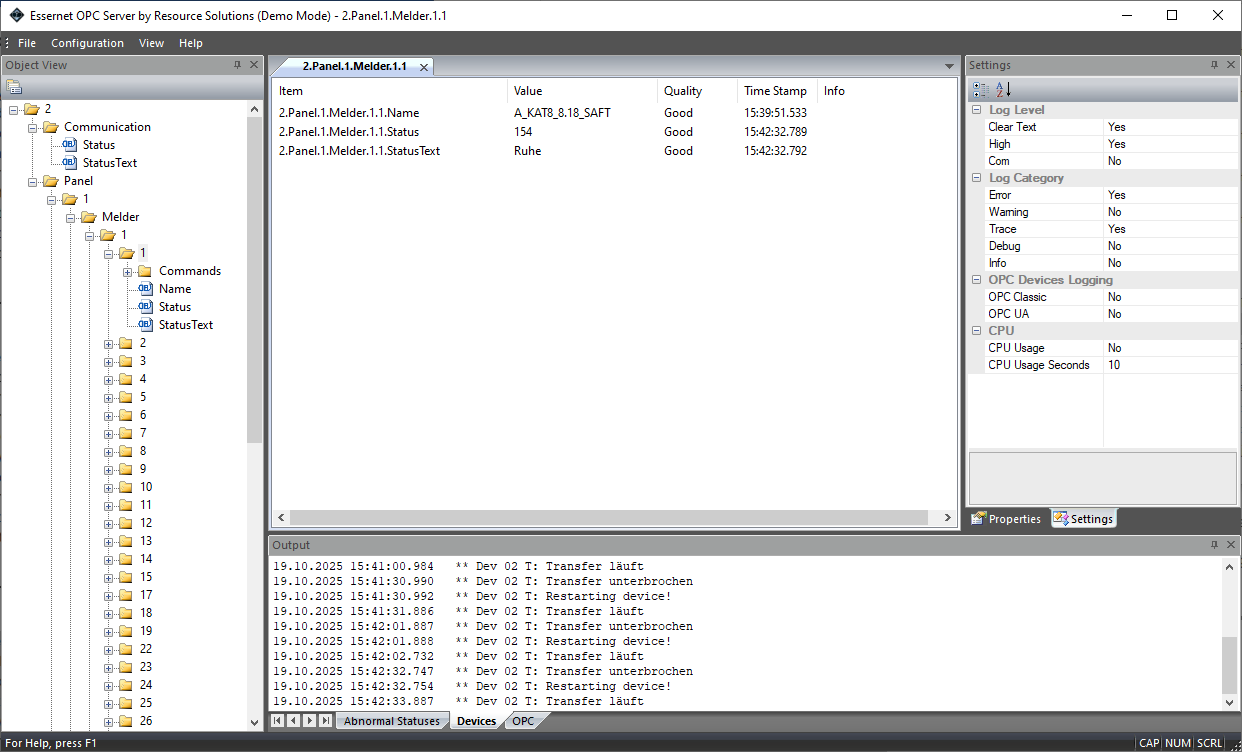 The technical challenges in developing an EsserNet OPC server lie in the precise decoding of the EsserNet protocol and the reliable conversion of information into OPC tags. AyICoSys addresses this through an in-depth understanding of the EsserNet communication structure. The developed OPC servers are designed to capture a wide range of EsserNet data points, including status messages (fire, fault, disablement), device information, and event logs. A significant advantage of the AyICoSys solution is its high stability and performance, which ensures uninterrupted data flow even in critical environments. Furthermore, we emphasize easy configurability and scalability of our OPC servers to meet diverse project requirements. The integration not only allows for the visualization of fire events but also the linking with other building services such as ventilation systems (controlling fire mode operations), elevators (traveling to safe floors), or access control systems (releasing escape routes). This leads to a significant increase in efficiency in emergency management and optimization of operational processes.